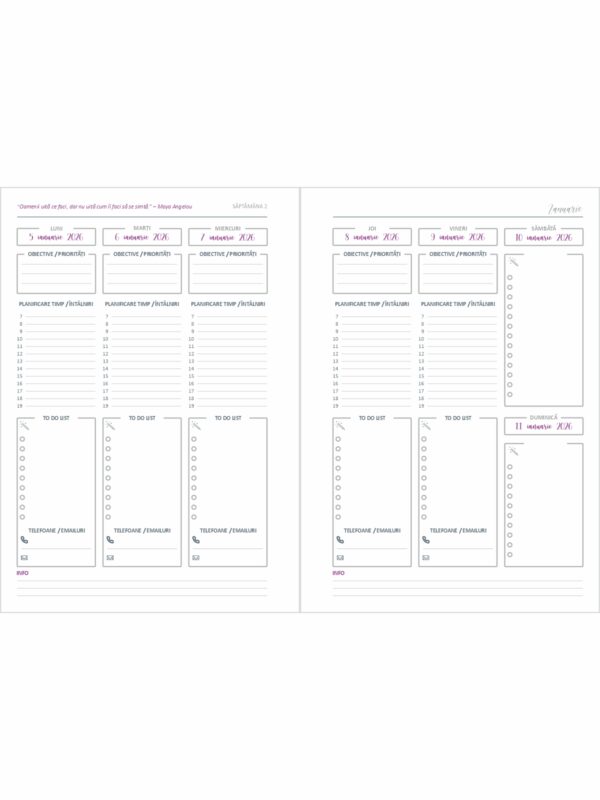 Agenda datata saptamanala 2026 – 19.5 * 26 cm – Coperta rigida