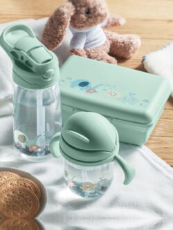 Sticla cu maner si pai este recomandata copiilor cu varsta de minim 3 ani.