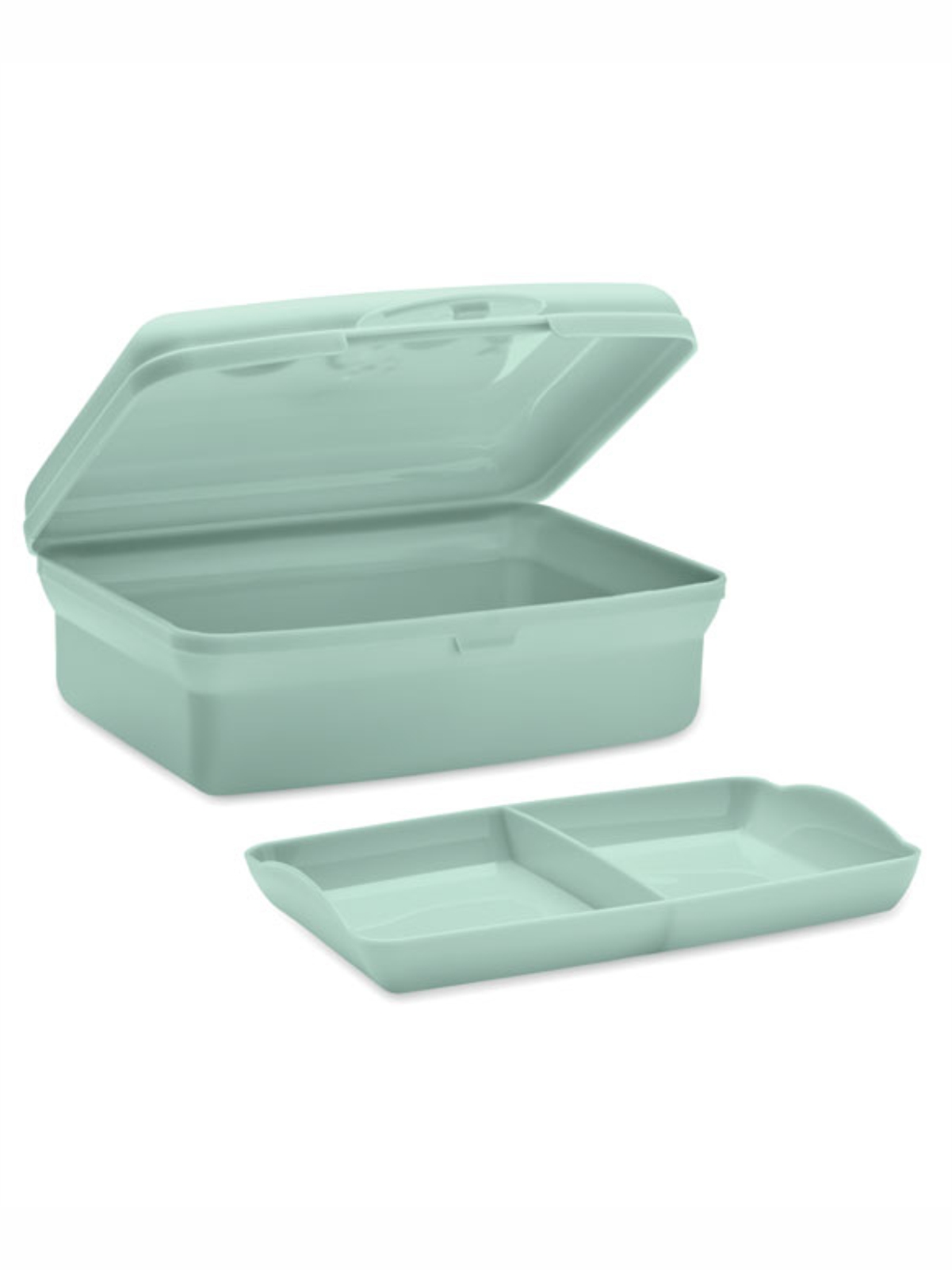 Cutie cu inchidere cu sistem click si tavita detasabila inclusa cu compartimente.